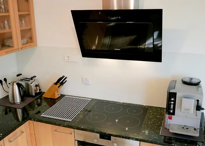 Ferienwohnung-Parkplatz-Balkon-Küche-Aufzug-SmartTV-Waschtrockner